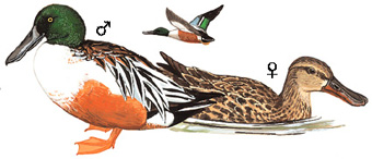 区别辨识:与绿头鸭、针尾鸭、绿翅鸭等相比,琵嘴鸭的勺状喙和蓝灰色翼上覆羽是其显著特征。