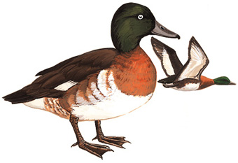 区别辨识:与白眼潜鸭相比,青头潜鸭的棕色更多,赤褐色较少,腹部白色延伸至两胁。与赤膀鸭区别在于头部无冠羽,体型较小,尾下羽白色。