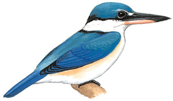 生活习性:主要栖息于沿海地带,尤其是在红树林沼泽,也出现在农田、开阔的林地、草地和花园。饮食多样,包括小型甲壳类动物、鱼类、昆虫、蜘蛛、蚯蚓、蜗牛、两栖动物、蜥蜴、蛇、小鸟蛋和小型哺乳动物。捕食方式为长时间静止守候,发现猎物后俯冲捕捉,然后飞回栖木处,较大猎物会在枝干上敲打使其失去抵抗。