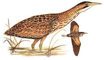 外形特征:大麻鳽体态敦实,体长64-80厘米,体重雄鸟750-2060克,雌鸟650-1150克,翼展125-135厘米。头部黑色,脸部和颈部黄褐色,带棕色条纹;上体金棕色,有黑色斑点和条纹。喙黄色,虹膜黄色,脚和腿绿色。性别间存在颜色差异,雌鸟比雄鸟标记较淡。幼鸟的帽和髭须更浅更棕色,背部图案不那么明显。