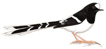白冠燕尾(英文名:White-crowned Forktail,学名:Enicurus leschenaulti),是雀形目鹟科燕尾属的鸟类。体长25-28厘米,黑白色调,腰腹部白色,翼黑褐带白斑,尾羽长且呈深叉状,黑白相间,十分醒目。分布于印度东北部至东南亚,包括中国部分地区。