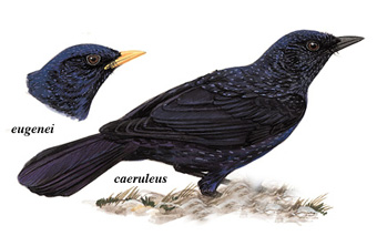 区别辨识:与同属物种相比,紫啸鸫的喙色和斑点分布是主要区别。不同亚种间喙色和大小有差异,如flavirostris亚种喙最厚,dichrorhynchus亚种斑点最小。