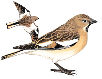 区别辨识:与白斑翅雪雀相比,褐翅雪雀的羽毛颜色对比度较低,翼上的白色部分较少。雌鸟的喉部斑点更淡,翅膀上的黑色略显棕色。
