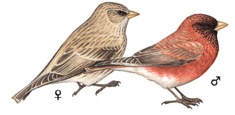 外形特征:雄性藏雀体长约17-18厘米,拥有长翼和短腿,头部圆润,喙细长尖锐。雄鸟头部深红至紫红色,颈部灰粉色,背部灰或灰棕色,具细小的红边羽缘,形成条纹或鳞片状图案;尾部暗褐色,基部有粉红边缘。雌鸟头部浅棕,面部有深色细纹,喉部白色,下体浅黄棕色,具深色条纹。幼鸟特征类似雌鸟,但喙色较淡,部分个体可能具有更深的面部色彩和更橙色的整体色调。
