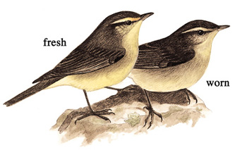 区别辨识:与烟柳莺相比,灰柳莺色彩较冷,眉线前端橘黄后转为黄色。与黄腹柳莺区别在于色彩更淡且亮丽。与褐柳莺区别在于色彩较冷,喉部无黄色细纹。