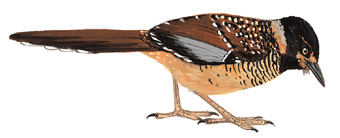 眼纹噪鹛(英文名:Spotted Laughingthrush,学名:Ianthocincla ocellata),是雀形目噪鹛科Ianthocincla的鸟类。其最显著的外部特征是顶冠、颈背及喉部的黑色,上体及胸侧具有粗重的黑白点斑。分布于喜马拉雅山脉至缅甸和中国南部,常见于山林中及林下灌丛间,善于在腐叶间觅食。