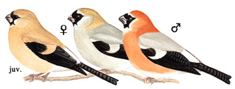 外形特征:雄性红头灰雀头部至胸部为亮丽的橙色,雌鸟头部后颈呈淡黄绿色,两者背部均为柔和的灰色,翼板黑色。雄鸟的前额、眼后至脸颊为黑色,头顶至颈侧颜色从浅至深的橙色,脸部至喉部中央为淡黄色,耳羽稍显丰富色彩;上体为灰或深灰,臀部白色,尾羽及覆羽黑色,略带紫色光泽;翼上覆羽尖端有淡灰至白边。雌鸟头部至下巴黑色,边缘有一窄白带,头顶灰色,后颈至颈侧淡绿黄色。幼鸟类似雌鸟,但整体色调偏棕色,头部暖棕色,上体带灰色,翼上覆羽尖端深棕或红棕色,胸腹部灰橄榄色或黄橄榄色,下体温暖棕色。